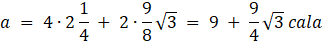 Bok tego trójkąta składa się z 4 średnic bili i dwóch odcinków b: