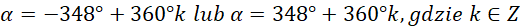 W tym zadaniu musisz powiedzieć, dla jakich xy funkcji y = cos α wynosi tyle samo co dla kąta –348° przy założeniu, że miara kąta α jest większa lub równa –360° oraz mniejsza lub równa 360°.