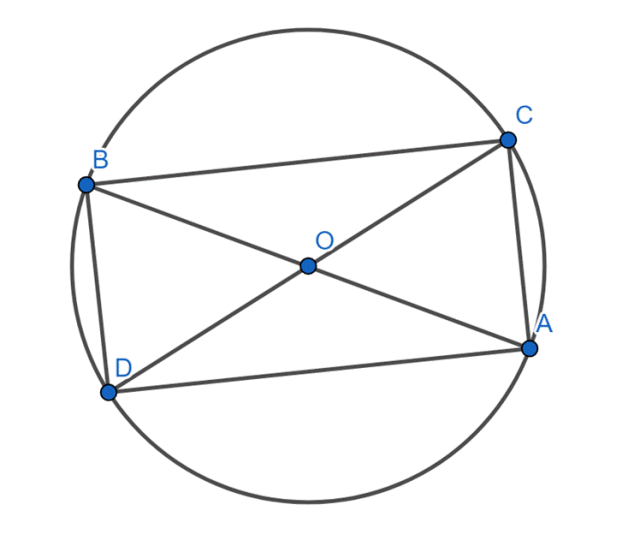 Cięciwy AB i CD są różnymi średnicami jednego okręgu. W tym zadaniu musisz wykazać, że czworokąt ABCD jest prostokątem.