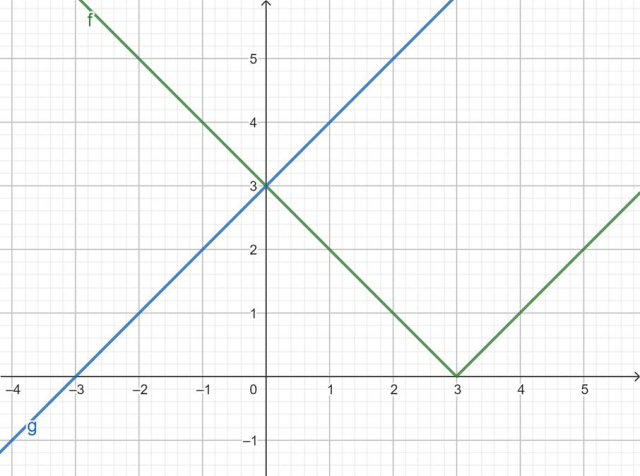 Wyznacz dla jakich x niebieski wykres jest nad zielonym.