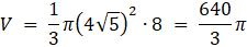Dany jest stożek o przedstawionych wymiarach. Znajdź jego pole powierzchni i objętość.