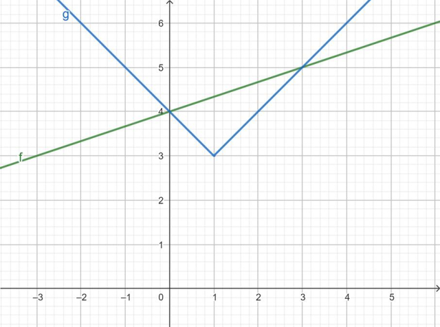 Wyznacz dla jakich x niebieski wykres jest nad zielonym.