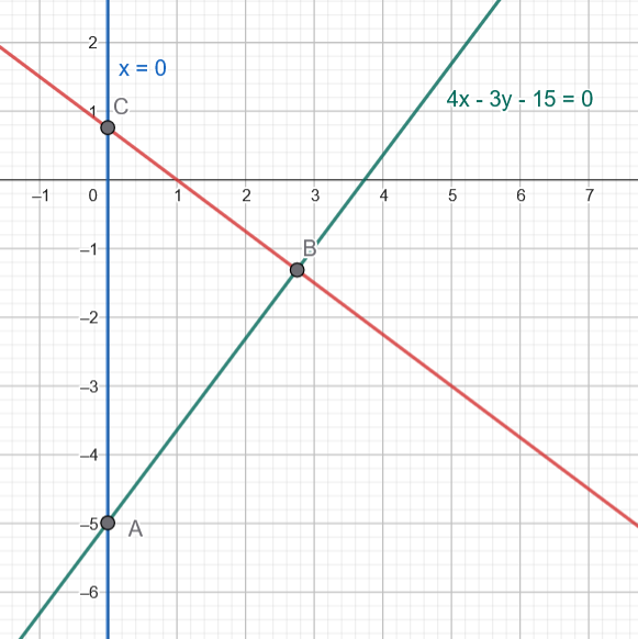 Punkt przecięcia prostych BC i AB, współrzędne punktu C: