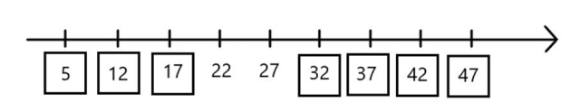 Uzupełnij okienka na osi odpowiednimi liczbami.