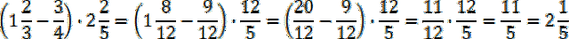 Pamiętaj o kolejności wykonywania działań: najpierw działania w nawiasach, a potem działania poza nim. Sprowadź liczby w nawiasie do wspólnego mianownika i wykonaj odejmowanie (zamień całość w odjemnej na ułamek, gdy to konieczne). Zamień liczbę spoza nawiasu na ułamek niewłaściwy i wykonaj mnożenie. Wynik podaj w najprostszej postaci, czyli skróć otrzymany ułamek i wyłącz całości.
