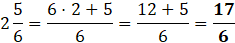 Liczbę mieszaną zamień na ułamek niewłaściwy, mnożąc mianownik części ułamkowej przez część całkowitą i dodając ją z licznikiem.