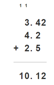 Liczba w zielonym trójkącie: 3,42 + 4,2 + 2,5 = 10,12
