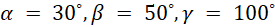 Kąt 30˚ i α są naprzemianległe, tak samo kąt 50˚ i β. Kąty 30˚, 50˚ i γ są przyległe.