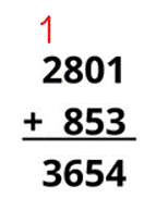 Wykonaj sumę liczb 853 i 2801 sposobem pisemnym.