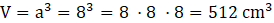 Na początek zapisz wzór na objętość sześcianu. Następnie za niewiadomą a wstaw podaną długość boku. Rozpisujesz potęgę i oblicz objętość.