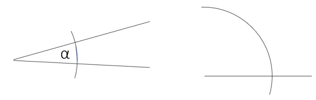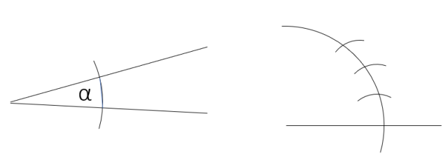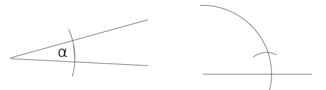 Odmierz długość odcinka o końcach w punktach przecięcia łuku z ramionami kąta