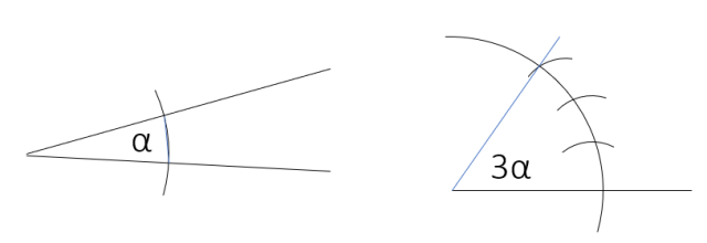 Wbij cyrkiel w punkt przecięcia łuku z półprostą i zaznacz odmierzona rozwartością punkt na łuku. Następnie w wyznaczony punkt wbij cyrkiel i powtórz tą samą czynność. Po raz ostatni wbij cyrkiel w wyznaczony punkt i wyznacz trzeci punkt na łuku.