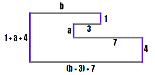Obw = b + 1 + 3 + a + 7 + 4 + (b – 3 + 7) + (1 + a + 4) = 2a + 2b + 24