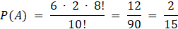 sposobów, ponieważ książka A może stanąć na miejscu od 1 do 6, aby książka B mogła być 4 miejsca dalej lub może być sytuacja odwrotna, a pozostałe książki można ustawić na 8! sposobów. Korzystając z tych informacji otrzymasz