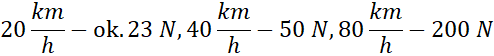 Przyjrzyj się wykresowi i odczytaj z osi pionowej siłę oporu działającą na samochód przy prędkościach