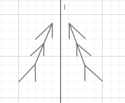 Dokończ rysunek tak, aby po złożeniu kartki z tym rysunkiem wzdłuż prostej l, dwie strony rysunku pokryły się.