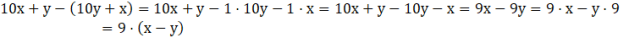 W tym zadaniu musisz udowodnić metodą wprost, że jeżeli od liczby dwucyfrowej odejmiemy liczbę dwucyfrową powstałą z zamiany cyfr tej liczby, to dostaniemy liczbę podzielną przez 9.