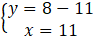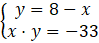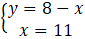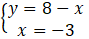 Korzystając z równości y = 8-x, w miejsce y w drugim równaniu podstawiamy 8-x: