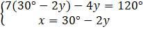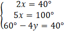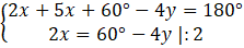 Ułóż układ równań, korzystając z tego, że suma kątów w trójkącie to 180 stopni i kąty przy podstawie trójkąta równoramiennego są równe.