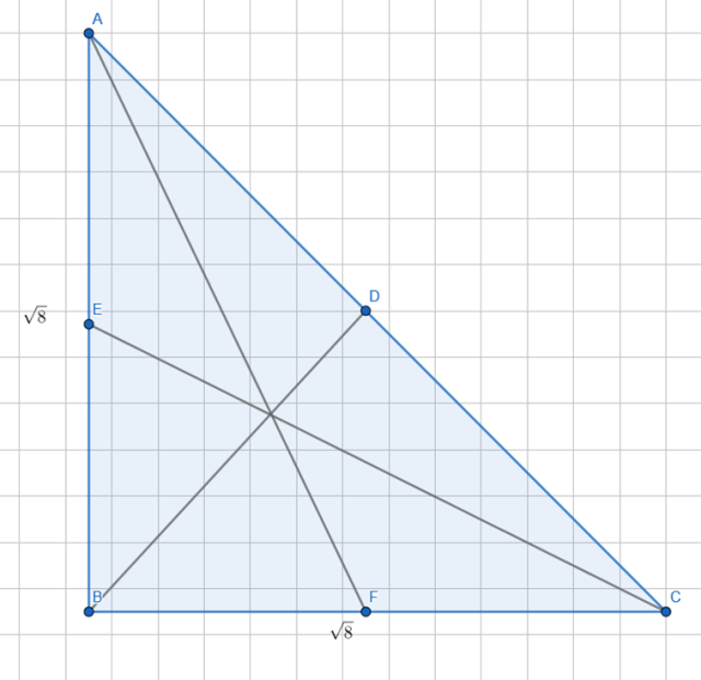 Wylicz długości środkowych w trójkącie prostokątnym równoramiennym.