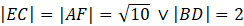 . Powstały trójkąty prostokątne ABF i BDC. Z twierdzenia Pitagorasa najpierw policz |AC|. Następnie oblicz z twierdzenia Pitagorasa dwa mniejsze trójkąty.