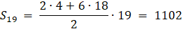 . Uzyskane dane podstaw do wzoru na sumę wyrazów ciągu.