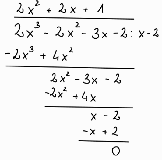 Przekształcasz dane równanie, aby otrzymać wielomian o współczynnikach całkowitych. Zgodnie z twierdzeniem o pierwiastkach całkowitych wielomianu sprawdzasz, które liczby są jego pierwiastkami. Po ustaleniu danej liczby wykonujesz dzielenie pisemne wielomianu. Wynikiem dzielenia jest trójmian kwadratowy, który sprowadzasz do najprostszej postaci korzystając z delty, co umożliwi ustalenie wszystkich pierwiastków wielomianu.