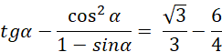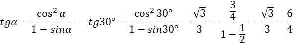 Musisz ustalić wartość kąta alfa, a następnie obliczyć podane wyrażenie.