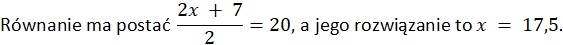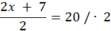 Przyrównaj tę sumę do liczby 20 i pomnóż równanie obustronnie przez 2: