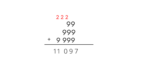 Zapisujemy wyniki dodawania kolumnami. Wynik dodawania jedności pod jednościami, dziesiątki pod dziesiątkami i tak wszystkie liczby. Gdy pojawia się suma większa od 9, to liczbę dziesiątek przepisujemy nad nasze liczby i dodajemy w kolejnym dodawaniu.
