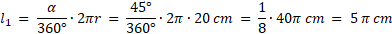 Zacznij od wyznaczenia długości łuku wyznaczonego przez kąt środkowy