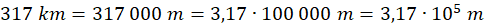 W tym zadaniu zamień 317 km na metry, a następnie otrzymaną liczbę przedstaw za pomocą notacji wykładniczej.
