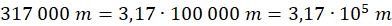 Następnie zapisz 317 000 m w notacji wykładniczej. Notacja wykładnicza to iloczyn liczby równej lub większej od 1 i mniejszej od 10 oraz potęgi liczby 10: