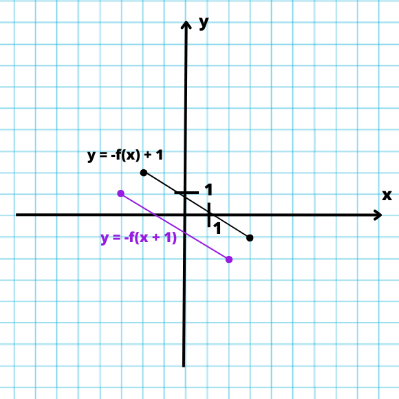 W tym zadaniu narysuj wykresy funkcji g(x) = -f(x) + 1, h(x) = -f(x + 1) wiedząc, że na rysunku przedstawiono wykres pewnej funkcji f.