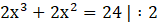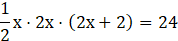 Podstawą jest trójkąt prostokątny, a wysokość graniastosłupa wynosi 2x + 2. Zatem wzór na objętość klocka to iloczyn pola podstawy i wysokości.