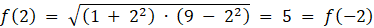 Funkcja f dla x = 0 osiąga minimum lokalne, a dla x = -2 i x = 2 – maksima lokalne.