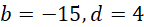 Z przedziałów monotoniczności wynika, że funkcja f(x) ma asymptotę pionową w punkcie -4. Stąd współczynnik d = 4. W celu obliczenia współczynnika b oblicz: