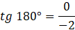 Ramię końcowe kąta 180° pokrywa się z ujemną częścią osi x. Jeśli podstawisz współrzędne dowolnego punktu należącego do tego ramienia (np. P = (-2, 0)) do wzoru na tangens kąta otrzymasz: