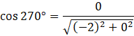 Ramię końcowe kąta 270° pokrywa się z ujemną częścią osi y. Jeśli podstawisz współrzędne dowolnego punktu należącego do tego ramienia (np. P = (0, -2)) do wzoru na cosinus kąta otrzymasz: