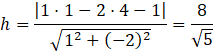 Wykorzystaj wzór na obliczenie odległości pomiędzy prostą a punktem: