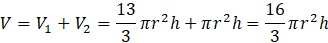wyprowadzony w zadaniu 8. oraz walca, żeby obliczyć objętości poszczególnych części bryły. Objętość to suma poszczególnych objętości.