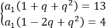 Dany malejący ciąg geometryczny tworzą trzy liczby, których suma jest równa 13. Jeśli od ostatniej liczby odejmiesz 4, to otrzymasz ciąg arytmetyczny. Podaj te liczby.