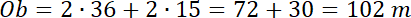 Wyznacz obwód działki A przedstawionej na rysunku, jeśli jej krótszy bok ma długość 15 m.