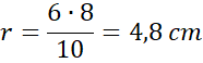 Wykonaj rysunek pomocniczy. Zauważ, że wysokość promienia powstałego okręgu jest jednocześnie wysokością trójkąta prostokątnego opadającą na przeciwprostokątną.