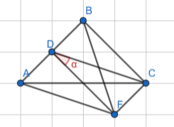 Skorzystaj z długości wysokości w trójkącie równobocznym i twierdzenia cosinusów, aby wyznaczyć cosinus podanego kąta.