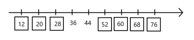 Uzupełnij okienka na osi odpowiednimi liczbami.
