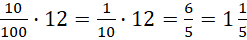 10% liczby 12 to 0,1 · 12 = 1,2