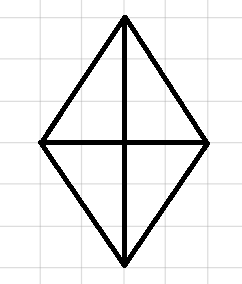 Na początku narysuj przekątne rombu o długości 4 cm i 6 cm. Następnie połącz ich końce, aby narysować boki rombu. Przekątne rombu przecinają się w połowie pod kątem prostym.