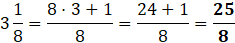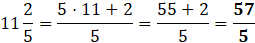 Liczbę mieszaną zamień na ułamek niewłaściwy, mnożąc mianownik części ułamkowej przez część całkowitą i dodając ją z licznikiem.