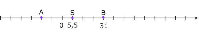 Punkt S jest środkiem odcinka AB. Wyznacz wartość brakującego punktu.